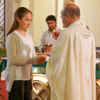 Nuestra comunidad educativa se reunió para acompañar a un grupo de alumnos/as y exalumnos/as que vivieron sus bautismos y recibieron por primera vez a Jesús en la Eucaristía.